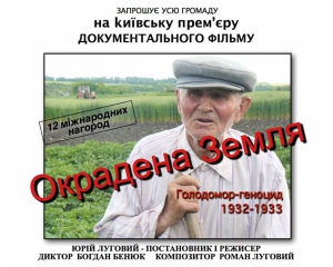 25 листопада в Українському домі у Києві відбудеться презентація фільму "Окрадена земля". Його зняв канадський режисер українського походження Юрій Луговий.