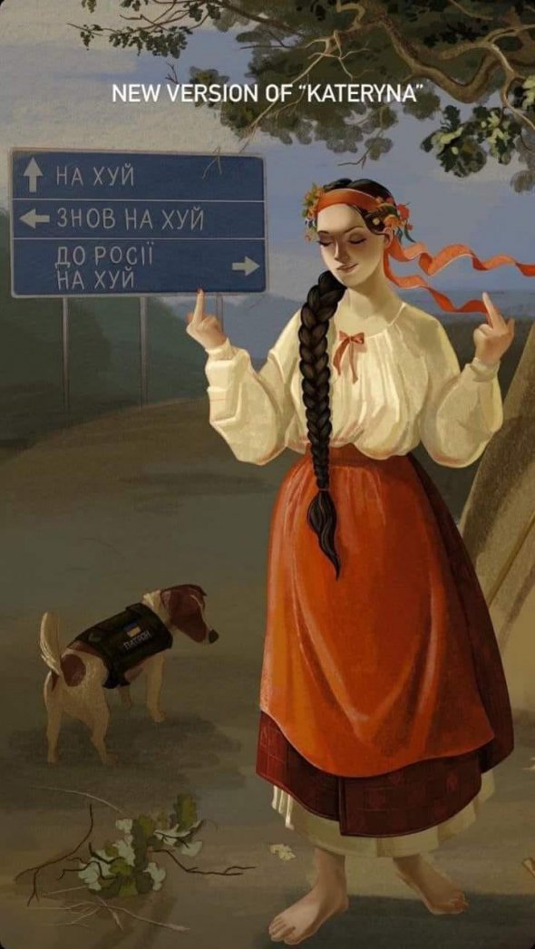 У час героїчного захисту України від нападу країни-агресорки Росії - митці піднімають бойовий дух українців новими роботами. Часто художники і креативники, що створюють меми, звертаються до всесвітньо відомих витворів мистецтва, надаючи їм нових сенсів.