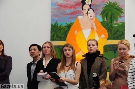 "У Москві дуже добре сприйняли його картини. Продаються як пиріжки. І дорого. Але скільки — не скажу. У них головне не техніка навіть, а динаміка. У кожній з картин є одна спільна деталь - маска принцеси. Тільки на одній — маска диявола. Це моя улюблена. Маю таку маску. З Японії привіз", - зауважив російський галерист Дмитро Ханкін.