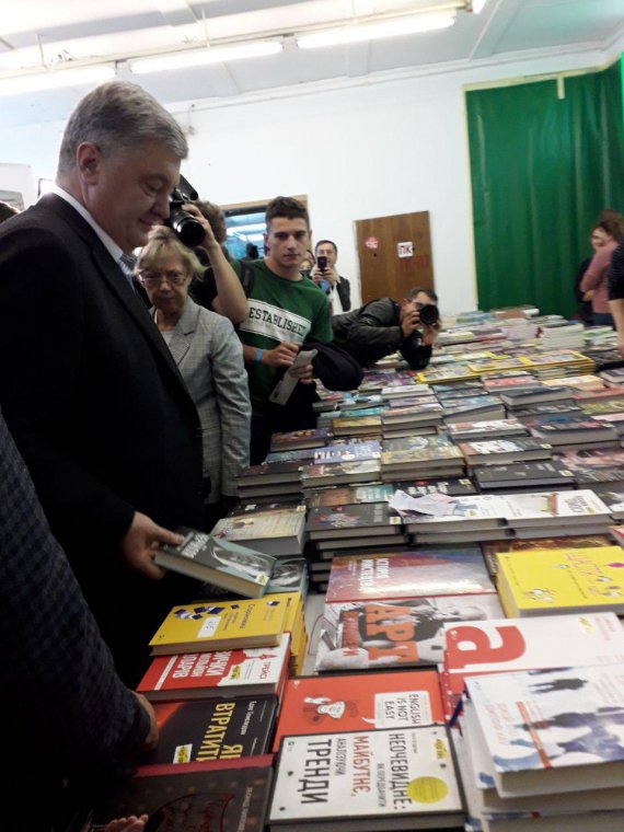 У наметі видавництва "А-ба-ба-га-ла-ма-га" Порошенко придбав останній роман Марії Матіос "Букова земля". Там зустрівся з письменницею і вона підписала йом книжку. У видавництві Vivat п'ятий президент придбав книгу Боріса Джонсона "Фактор Черчилля. Як одна людина змінила історію". Передає книги дружині.