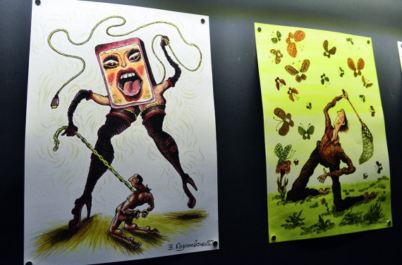 8 травня у Львівській галереї "Сатирикон" відкрили виставку карикатур Володимира Казаневського "Ватні коліна".