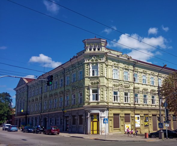 "Будівля слугувала як готель "Континенталь" із рестораном на першому поверсі, казино і великим концертним залом. Там часто збиралася еліта міста і заможні подорожні. З цією будівлею вдало поєднується слово "вперше". Саме тут був перший у місті ліфт, саме ця споруда стала першою триповерхівкою – до цього зводили тільки двоповерхові, і саме вона першою в місті отримала електричне освітлення – приватна маленька електростанція була відкрита саме для освітлення готелю. Лише через 12 років освітлення з'явиться по всьому місту. Тут же у підвальних приміщеннях готелю була заснована перша електротипографія братів Гольдрін, які фактично поклали початок друкарській справі в місті. За радянських часів тут працював палац культури. До російського вторгнення приміщення збирало креативників і творчу молодь, було справжнім культурним осередком міста. В готелі діяв молодіжний театр "Театроманія", театр Terra incognita, ляльковий театр, балетна школа і багато інших культурних осередків", - каже екскурсоводка.