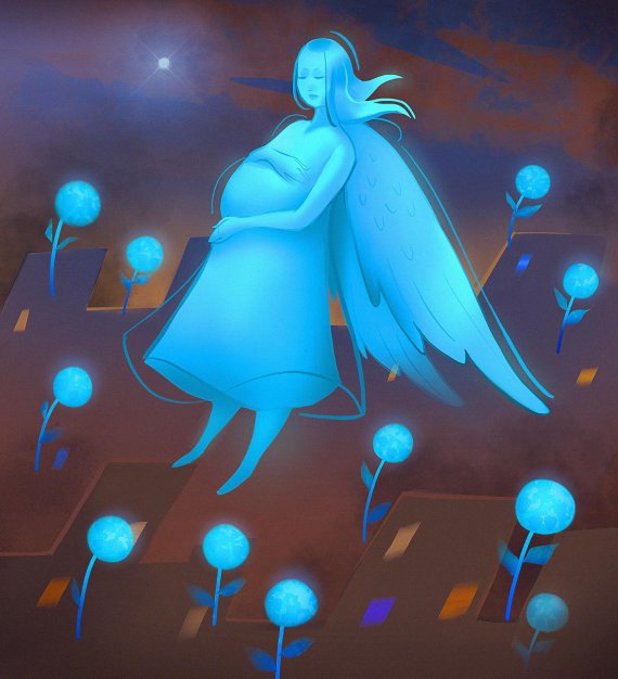 "Першим малюнком була квітка соняшника із планетою всередині та знаком "Мир". Соняшник символізує Україну. Я багато молилася за мир. За тиждень мої малюнки стають темніші, бо морально дуже важко переживати всі трагедії, які відбуваються в нашій країні. Бомбардування пологового будинку в Маріуполі розбило серце вщент. Я хотіла присвятити картину загиблій матері з дитиною і всім матусям, що постраждали під час війни", - каже художниця.