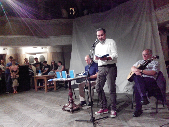 Львівський академічний театр, де влаштували читання віршів з антології, ущент забитий відвідувачами форуму. За задумом, вірші знакових українських поетів читають відомі сучасні митці - Іван Малкович, Юрій Андрухович, Віктор Морозов, Василь Жданкін. Читають поезію Володимира Сосюри, Павла Тичини, Олега Лишеги.