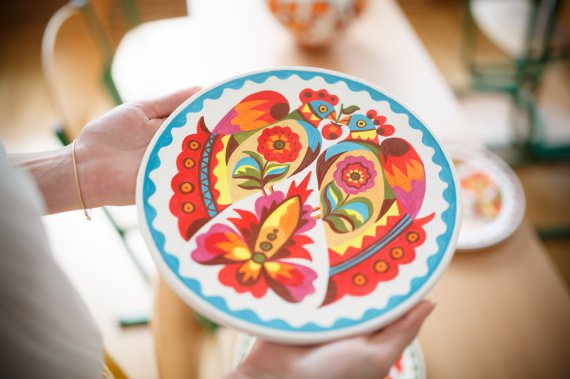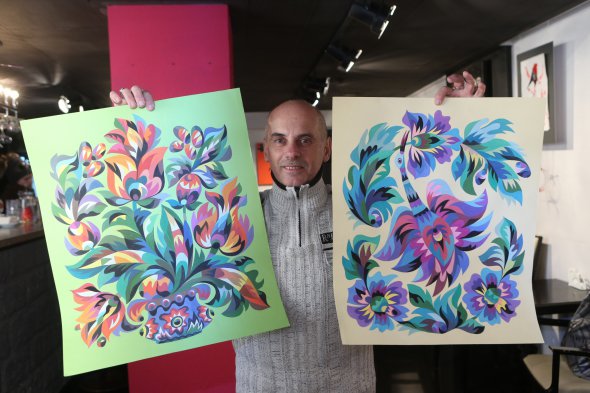"Самчиківку спочатку порівнюють із петриківкою. Однак вони мають суттєву різницю, - розповів Gazeta.ua художник Віктор Раковський. Займається народним розписом більше 15 років. - У самчиківці найчастіше використовуються такі елементи, як листя, квіти, ягоди. Є солярні знаки - сонце, місяць, зорі. Із тварин - коні, коти, собаки. Тільки ті, які населяють Україну. Пишемо птахів, які найчастіше у нас зустрічаються - ластівка, журавель, лелека".