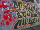 У ночі з суботи на неділю в Києві на набережній Дніпра з'явилось велике графіті "Режим вбиває людей".