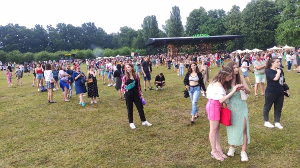 Перед North Stage на концерті рок-гурту "Друга ріка" зібралося кілька сотень осіб. Деякі відвідувачі прийшли з маленькими дітьми у колясках.