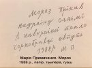 Примаченко завжди підписувала свої полотна просто "М. П.", проте на звороті розгортала ще один невидимий світ, який доповнював і надавав нових смислів її картинам. Наприклад: "Стародавнє дерево росло на Вкраїні, на широкій долині, де паслися Шевченкові бирки [вівці], а у нього на колінах дірки були, отак пан дивився";