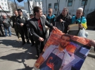 "Вибачитись також має Перший національний канал. Адже програму вели у записі і вони могли спокійно вирізати цей неприємний момент з передачі. Але не зробили цього. Це значить, що так росіяни ставляться до нас. Називають братами, а насправді паплюжать нашу пам'ять", - розповів організатор акції Володимир Манько