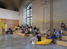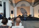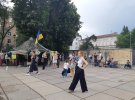 Кілька дівчат, серед них поетеса Катерина Калитко танцюють під сценою. Подалі ближче до входу в Мистецький арсенал спостерігає за дійством директорка комплексу Олеся Островська-Люта.