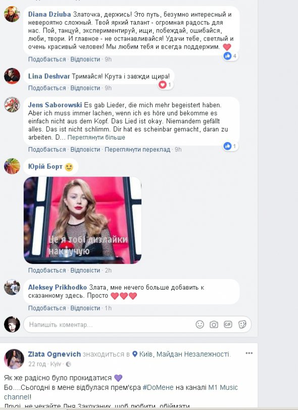 Сама співачка написала на своїй сторінці у facebook, що вдячна усім за підтримку і висловида свої думки про вкрай негативні наслідки "поганої критики".