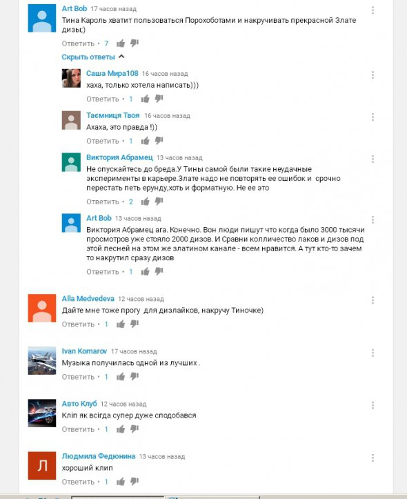 liluSwan додав: "Класна пісня! Я не вірю, що майже 500 лайків та 4000 дизів - це просто НЕРЕАЛЬНО! Однозначно, хтось захотів Златі зробити антирейтинг! :(