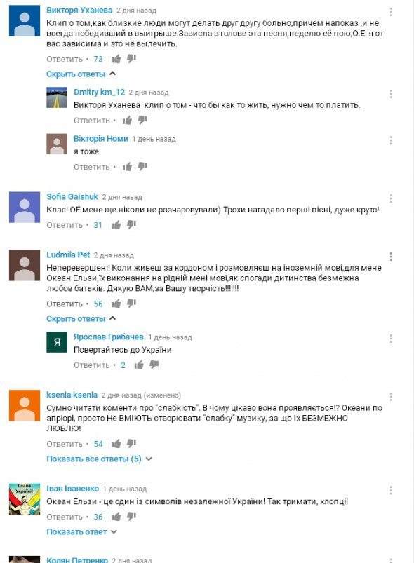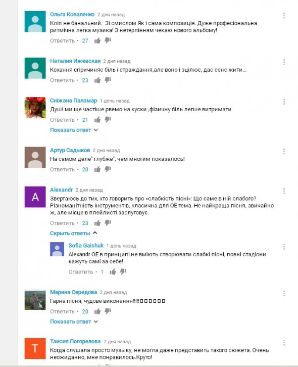 Дмитро Танцуров прокоментував: "Якось все не дуже. Коли вийшла тільки пісня - дуже сподобалася. Нагадувала ранню творчість ОЕ. А зараз дивлюся на кліп, і м-да. Зовсім не те, що я очікував побачити до такої пісні. Це повинно було бути щось легке і світле, чи що. Або хоча би як попередня робота - "Не йди". А тут так-то ідея дуже слабка, нелогічна і не відповідає пісні".