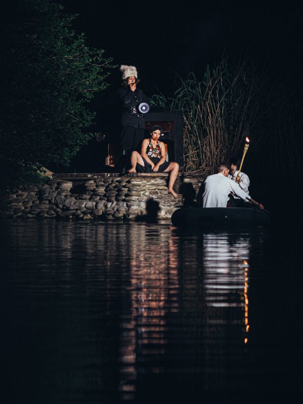"Нам було справді складно 100 днів не грати. Сьогодні ми - перший театр, який презентує післякарантинну прем'єру. Репетиції проводили тут, у Мамаєвій слободі, зустрілись у перший же день, як почав ходити транспорт. Актори у виставі – суцільний тестостерон, але вони всі були дико ніжні, - каже Ярослава, піднімаючись на драбину, що стоїть біля дерева на імпровізованій сцені. - Сьогодні, як завжди, театр буде диким - будемо трошки матюкатися, говорити речі, які можуть коробити - російською, українською, будуть психоделічні моменти, тож першим рядам буде особливо весело".