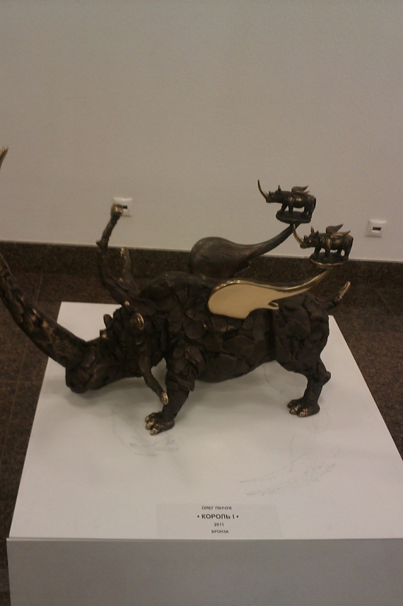 На виставці "Добрий лев" показують 17 скульптур Олега Пінчука й 15 картин Марії Приймаченко. Ця експозиція вже побувала в Софії, Загребі та Парижі. У Києві виставка триватиме до 21 листопада.