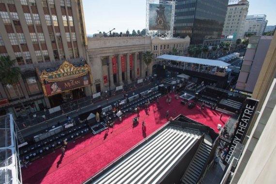 До "Оскару" Лос-Анджелес готувався декілька днів. Окрім перекритих доріг у місті, мешканцям довелось терпіти тривалі ремонтні роботи. Зокрема, із встановлення червоної доріжки. Її загальна довжина цього року становила понад 150 метрів. Ширина килимового покриття - 10 метрів.