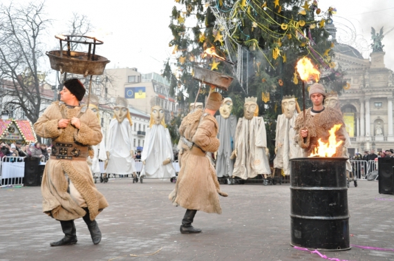 29 грудня перед головною ялинкою Львова театр "Воскресіння" показав вуличну виставу "Різдвяна феєрія". Вистава почалась з карнавалу великих масок, що подорожують містом. Актори використали дванадцять 4-метрових масок. Маски символізують образи Божої Матері, ангелів, Йосифа, царя Ірода та іних біблійних персонажів.