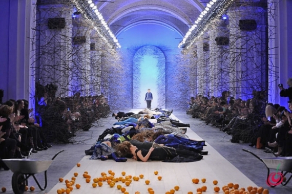 Наприкінці оголені чоловік та жінка викотили на подіум брички з апельсинами. Груди жінки прикривали гілля дерева, причинне місце чоловіка — череп. Моделі висипали фрукти на подіум і повернулись за лаштунки.