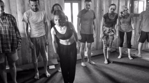 "Ми її називаємо лабораторною. Це був творчий експеримент. З командою "Гармидеру" виїхали до Карпат. У Ворохті на Івано-Франківщині 8 днів були закриті від зовнішнього світу. Мета була повністю акумулювати психічні, розумові сили. На цій межі фізичних можливостей дійсно відкриваєш у собі нові риси. Кожен актор розповідає історію свого персонажа мовою тіла. Це важко пояснити, тому що форма специфічна. Намагалися створити свою історію самотужки. Тобто це не жорстка сценарна і режисерська робота.