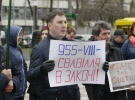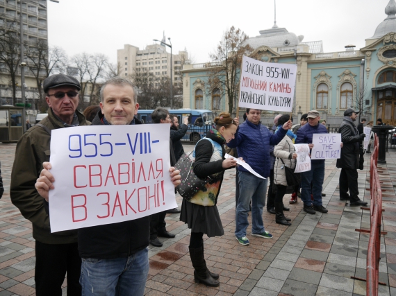 Працівники п'яти театральних і музичних столичних колективів вийшли на акцію протесту під Верховною радою проти закону про контрактну форму роботи для працівників культури. На плакатах написано — "Поверніть артистам Конституцію", "Захистіть людей і культуру" та "955-VІII – свавілля в законі!". Вимагають від парламентарів переглянути закон.