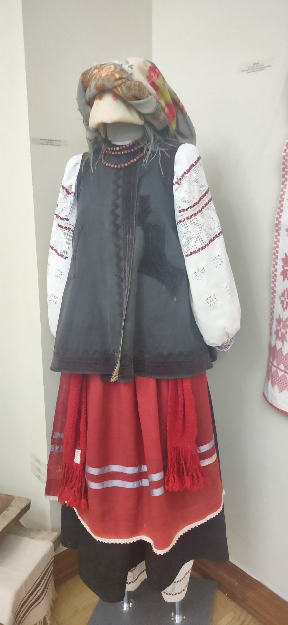 Представляємо й весільний одяг. Наречені могли одягати святковий комплекс, який дівчині купляли в 16-18 років. Родина з достатком могла дозволити собі окремий одяг. Весільне вбрання вирізнялося вінком та намистом. Коли моя бабуся виходила заміж, прадід продав двох волів. Щоб купити коралове намисто сім низок і з бурштину".