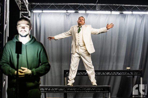Це в принципі про сенс існування та самоідентифікацію людини. Також зачіпаємо тему тотального переходу людей в смартфони. Герої б давно вирішили проблеми, якби просто зустрілися в живу. А так лишається багато недостаканного, залишаються наодинці зі своїми образами. Це також символізує соціальну дистанцію через пандемію. Але виставу робили ще до карантину, тому це співпадання.