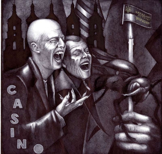 "У столичних галереях бачив "прічьосане" мистецтво або абстракції: кольорові плями два на два, моя третя. Це було не цікаво. Мене вразили соціальні контрасти в столиці, тому почав малювати правду. І ходити до цих галерей пропонувати своє мистецтво. Мені всюди відмовляли, - каже художник. - Наприклад, намалював київський генделик, у якому сидять якісь п'яниці. А на задньому фоні - "Любителька абсенту" Пікассо. Таке поєднання цікаве іноземцям. Є картина "З Різдвом Христовим". На ній показано застілля, де присутній священик, депутат. І всі смачно їдять, що аж не лізе. Роботи багатьох зацікавили. Почав продавати картини. Найдорожчу продав за 2 тисячі доларів. Починав з 50-ти. Спочатку купували іноземці. Знайшов пару з Голландії, що працювали в посольстві, купили кілька робіт. Потім запрошували до себе на тусовки. Навіть посол із Південно-Африканської Республіки замовив мені Нельсона Манделу. Іноземці казали, що я другий Енді Воргол. Вони не знають, що він має українське коріння."