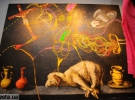 "Іспанія в чому, в ковбасах і монахах? Це справжня вітчизняна СК, тобто наші реалії. Саша, як справжній майстер вписав Європу в український контекст. Згадую, його роботу із величезним шматом сала. Була така робота десь півтора на три метри. Водночас в нього є притчевість та міфологічність", - додав поет.