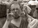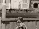 - Рухаємось ми партизанськими доріжками справжніх безпритульних, а вони пролягають від нірки до нірки через людні місця. Перехожі дивляться на це розгублено і для самозаспокоєння, думаю, обирають собі експрес-трактування баченого як божевільства, тим більше що із різноманітних причин зображуваної бездомності ми й справді обираємо позначені "мистецькою божеволинкою", оскільки проект, все ж таки, досить мистецький. Мініконфлікти трапляються майже щоразу. У випадку з Андрієм - коли знімали останні кадри з їжаковидним мішком, в об'єктив потрапила червонолиця на той момент жінка, якій в силу якогось отруєнння без підтримки стіни переміщуватись було важко. А метрів за 100 її слідами трохи рівніше йшов якийсь чоловік, який вирішив не залишати "неподобства" просто так і напав на нас словами "ця женщіна зі мною, я всьо бачу, шо ви тут з бутилками, я зараз сфотографірую, чим ви тут занімаєтесь і повішу в газєту". Якби ж він знав, шо "повісити в газету" приблизно і було метою того, чим ми займались. У фотосеті з Грицьком Семенчуком громадський конфлікт виник (не зважаючи на паркове безлюддя 9-ї годин недільного ранку), коли ми висаджували фотогероя до ніг Шевченка на високий постамент нового пам'ятника, що швидше нагадує молодого Ющенка з непропорційно величезними руками, які не крали. Правда, побачивши журналістське посвідчення і фотоапарат, оборонець Шевченка прийнявся активно допомагати.
