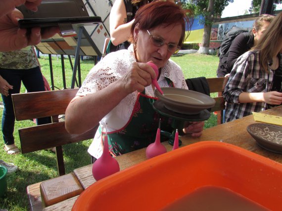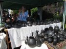 "Найходовіший товар — турки для кави. Від 150 гривень. В нас незвична кераміка — чорнодимлена. За спеціальною технологією посуд виходить не коричневий, а чорний. Люди часто думають, що він чавунний або із гуми. Насправді, то вугілля при термічній обробці дє такий колір. Гончарство — це щось невід'ємне від Украни. Шкода, що держава не підтримує розвиток. До прикладу, в Угорщині гончарна справа дотується владою", - додала Алла Івашків, з чоловіком-майстром приїхали на фестиваль із Червонограду Львівської області.