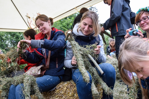 "Я завмерла. Це ж геніальний баранчик, який просто скорився. Я спочатку подумала, що це буде такий забіяка, який приготувався до бою. А він схилився. Приніс квіти своїй коханій ягничці. У нас тут геніальні діти", – захоплюється роботою маленької дівчинки київська майстриня Леся Колосенко. Для дітей проводить майстер-клас із виготовлення скульптур з сіна. Волосся в жінки заплетене в тоненькі дрібні косички. Майстриня називає їх дрібушки. До майстер-класу здебільшого долучається молодь та діти.