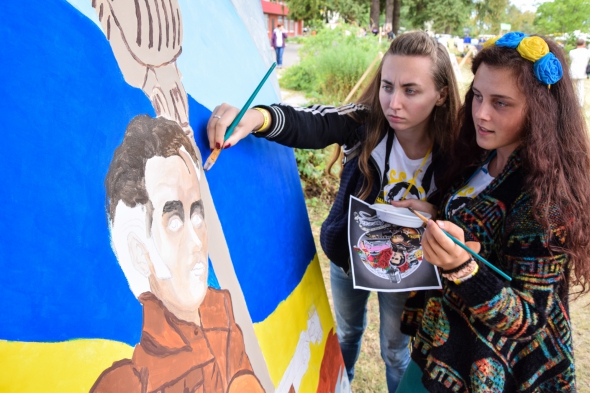 "Це – картина руками жителів і відвідувачів Моринців. Спільне творення Шевченка. У нас люди позбуваються страху щось намалювати і відчувають себе художниками. Закінчена робота зберігатиметься в місцевому музеї", – каже художниця Олена Вишневська.