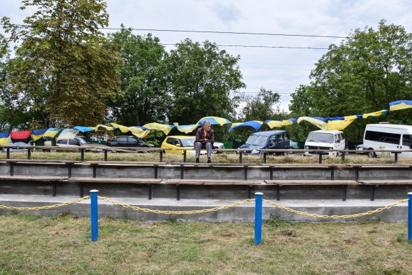На площі біля стадіону розвісили 184 жовто-блакитні та червоно-чорні прапори. На них написані назви населених пунктів, патріотичні заклики.