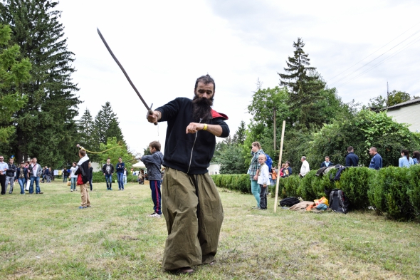 "Тікаєм звідси, а то як лупоне", – молоді хлопці проходять повз майстрів, які демонструють козацькі бойові мистецтва. Ті вчать вправлятися з батогом та шаблею. Свою техніку називають "Спас".