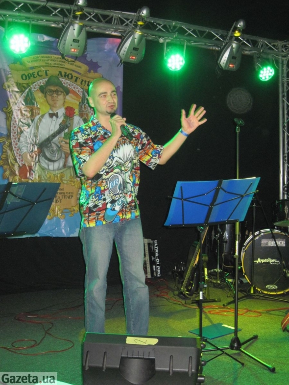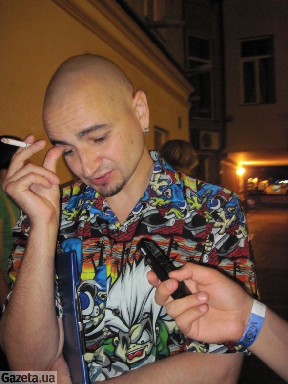 "Я не пишу спеціально і не називаю себе поетом. Бо літератор – це людина, яка постійно творить за серйозним столом, як за верстатом. А у мене якось так відбувається: йду вулицею, римую слова. Багато віршів навіть не записані на папері. Може, я у житті зануда, але на сцені хочу нести радість", - говорить поет в інтерв'ю Gazeta.ua. У руках тримає сигарету і чорну папку зі своїми віршами.