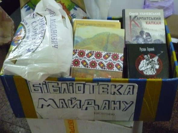Бібліотеку Майдану створили 27 січня, після звільнення Українського дому від силовиків. Ініціатива належить подружжю з Дніпропетровська Вікторові та Інні Бісовецьким.