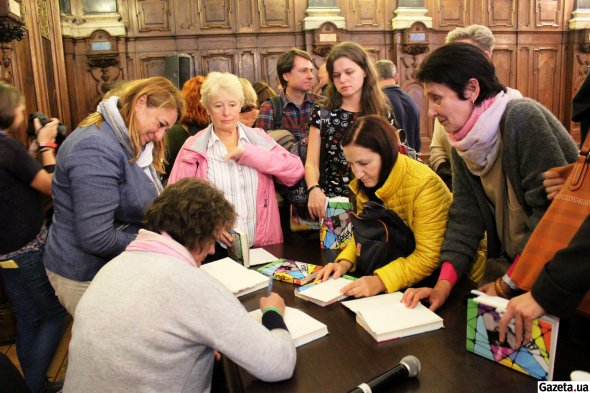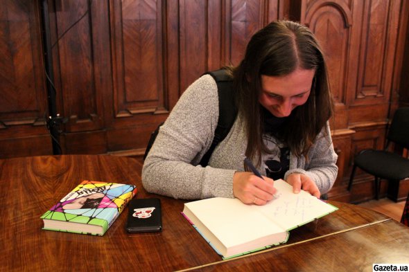 "Не знаю, що додати. Але пані Наталю, це дуже добра книжка. Дуже не люблю, коли мене про це просять, але я вас проситиму про дозвіл сфотографуватися", - говорить Оксана Забужко.
