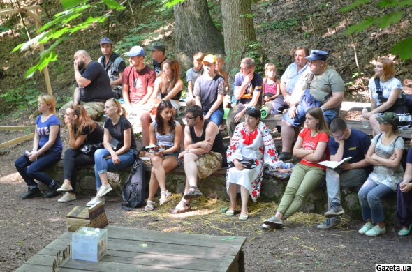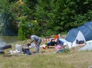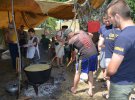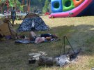 Запах літнього лісу змішався із запахами смаженого на вогні м'яса і козацької каші. Наметове містечко, яке розташувалося ліворуч за невеликими озерами налічує близько 70 палаток різних кольорів і розмірів.