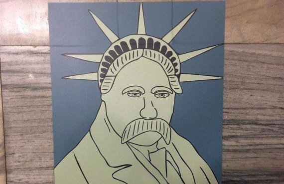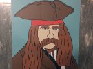 На експозиції показано українського поета і художника в образі відомих кіногероїв та історичних постатей.