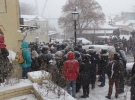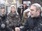 Серед глядачів почалися суперечки. З'явилися молодики з плакатами. "Кличко, забери крематорій. Поверни театр", - напис на одному з них. Мера Києва на події не було. Його представляла заступник з гуманітарних питань Ганна Старостенко.