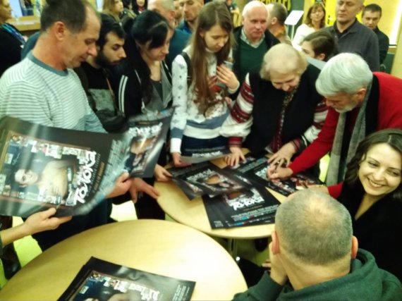 На показ прийшли актори зі львівських театрів, політики, письменники. Багато охочих у холі фотографувалися з лідером гурту "Мандри" Сергієм Фоменком – Фомою. Він – саундпродюсер стрічки. Тур картини зоною ООС пройшов восени торік за підтримки Українського культурного фонду. Організатори домовилися, що сім гривень з кожного квитка на "Толоку" будуть перераховані Фонду "Повернись живим" на допомогу армії.