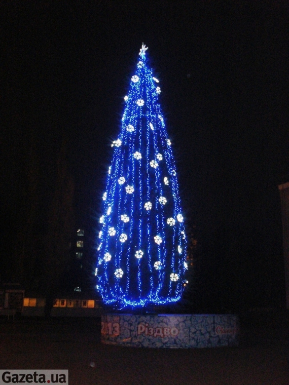 Найперша новорічна ялинка в місті з'явилася ще на початку грудня. Її урочисто відрила міська влада вже традиційно на площі біля драмтеатру. Задля цього влаштували забаву для дітей і під оплески дітвори "запалили" ялинку. Як повідомили в прес-службі міськвиконкому, цьогоріч для її створення використали 173 маленьких ялинок, із місцевого лісництва. Прикрасили новорічне дерево новими гірляндами.