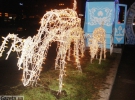 Також мерія прикрасила й сквер "Юність", оздобивши його яскравою ілюмінацією та зробленими з гірлянд казковими героями. Зокрема вздовж алеї скверу "засвітилися" казкова карета, Лускунчик, велетенський годинник, яскраві олені та сніговики.