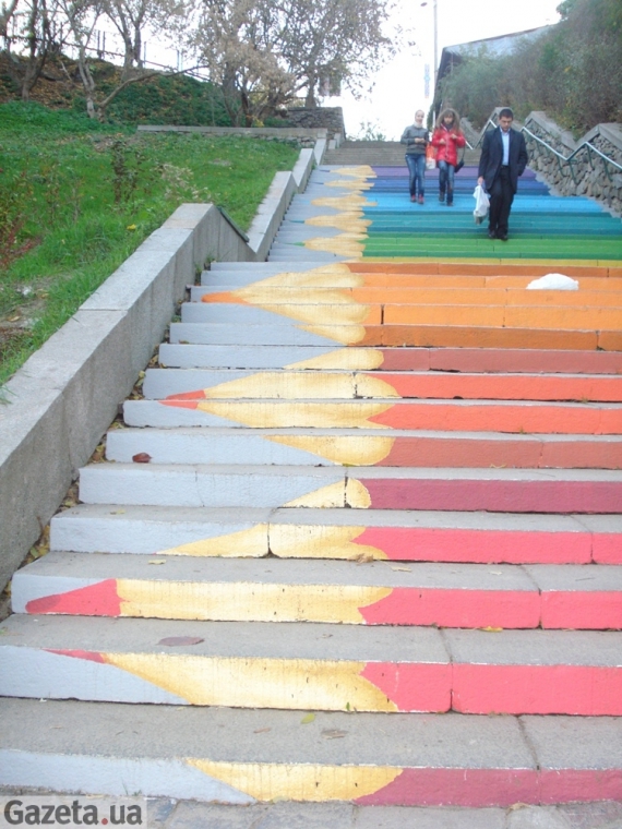 Зокрема на сходах-спуску в район Митниці від Палацу одружень відтепер зображені велетенські кольорові олівці. Крім того, в місті оригінально розфарбовані паркани, трансформаторні будки та інші будівлі.