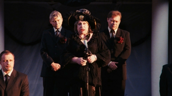 Михайло Іллєнко грає пацієнта психіатричної лікарні, який 129 разів вмикає та вимикає світло. "Цю сцену писав спеціально для Михайла Герасимовича. Це має і символічне значення. Людина реально рятує світ..." - посміхається Валентин Васянович.
