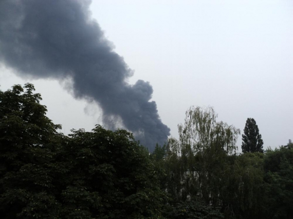 Полум"я повністю охопило корпус А. Горить середина та дах триповерхового приміщення. Місцеві мешканці, які зібралися на пожежу, кажуть, що це склади магазинів електроніки "Ельдорадо". Інші ж заперечують:
