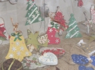 "Анжеліка Рудницька теж надала багато новорічних прикрас. Її ім'я походить від слова "ангел", тому друзі постійно дарують їй фігурки янголів: кришталевих, паперових, із тіста, глини і навіть із бурштину. Всі вони представлені на нашій виставці. Також Анжеліка надала іграшки, які сама розписувала", - додала вона.