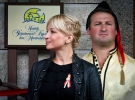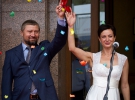 "Мені сподобалась виставка гобеленів на першому поверсі. Особливо полотно зліва від входу, яке називається "Наречена". Але я б її назвав "перенародження". Ці гобелени жорстко прив'язані до традиційної народної культури. Я пам'ятаю їх з дитинства. У бабусі навіть був ткацький верстат. Але у тих візерунках ніколи не було зображено ніяких предметів чи реалій", - поділився спогадів Олександр Бригінець, голова комісії Київради з питань культури.