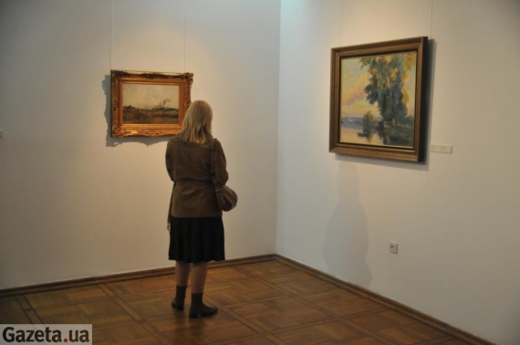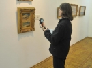 Розмістили картини у найбільшій виставочній залі музею. Після усіх офіційних промов людей в зал запускали лімітовано. По десять чоловік за раз. Через це на вході утворилась черга. Заборонялося заходити в приміщення з сумками.