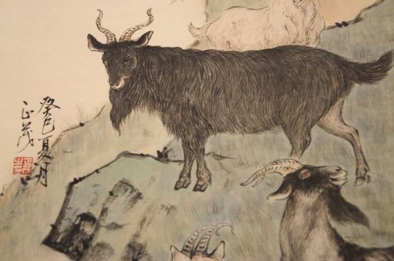 На картинах немає підпису автора, але є його власна іменна печатка. Вона надає рівновагу композиції і тим самим засвідчує, що картина вже закінчена. Сюжети картин китайського художника життєві, він часто малює звірів: тигра, оленя, вовків, малює сцени із повсякденного життя, дітей та літніх людей у національних костюмах.